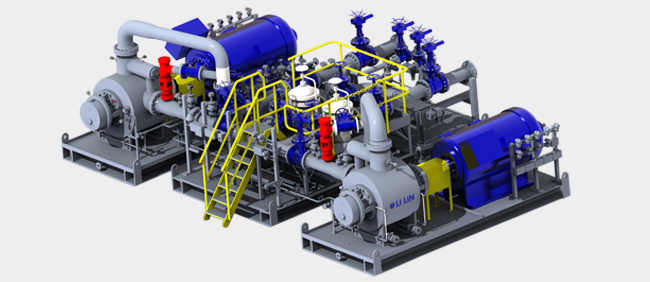 The supercharging system integrates machines, hydraulic pressure, instruments and electrical control and make pre-arranged planning for possible abnormalities to reduce failure rate and improve operating service life of machine unit.